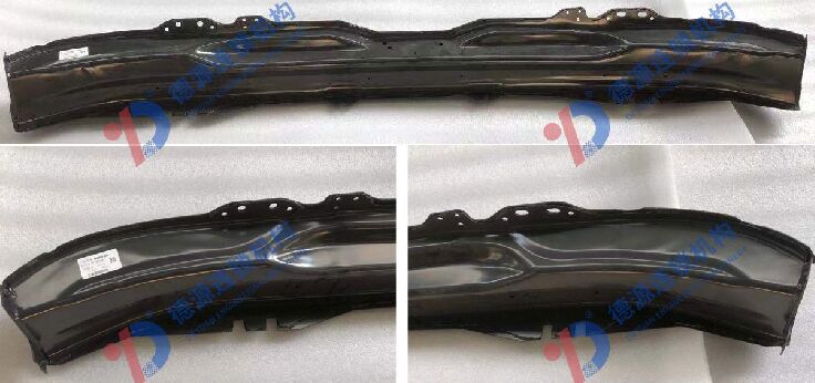 Uma estrutura de apoio de metal que fixa o pára-choque no veículo.